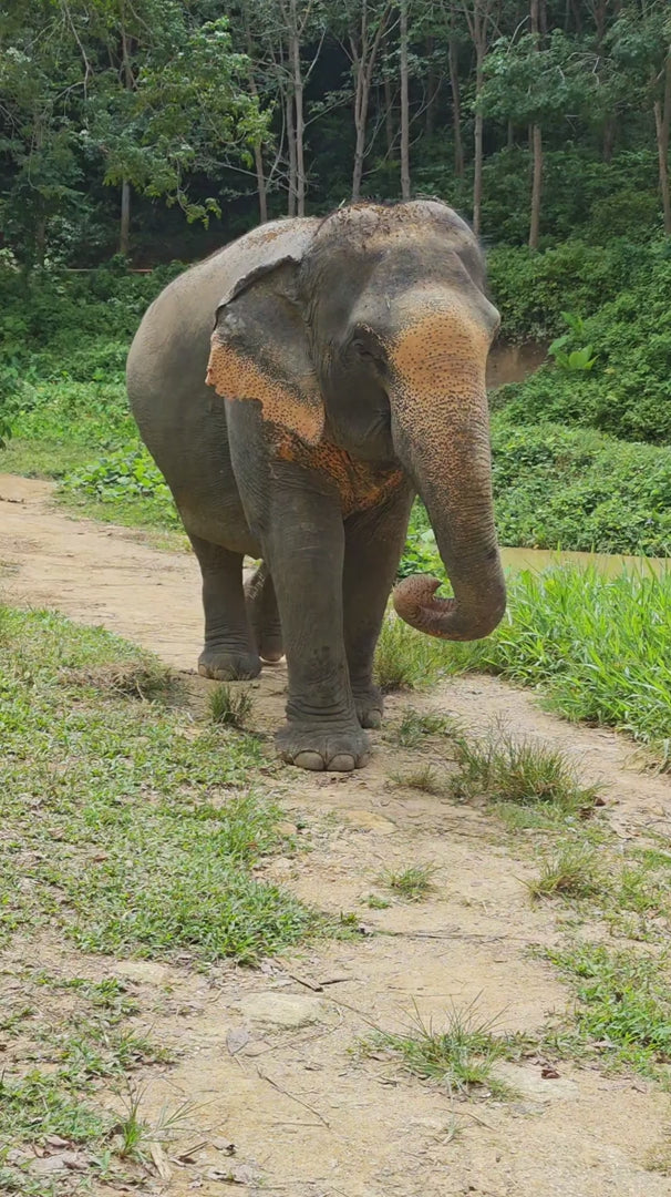 We would love Ton Oi to become friends with our other elephants but she gets very excited and tends to push, so we are taking interactions slowly. At the time of writing (17 July 2024), she is showing interest in Wassana and Nong Fai, so we'll see over the next weeks if this friendship blossoms. We take time to socialise our elephants. Some have never had a friend before, each has their own personal trauma, and it's safe and respectful not to rush interactions.